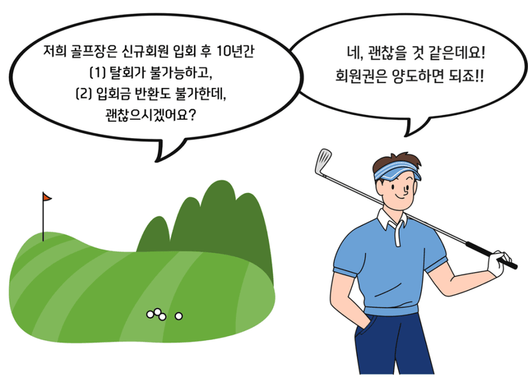 예를 들어, 명의변경신청서에 위와 같은 문구가 적혀 있고, 양수인이 이에 서명했다 하더라도, 골프장 측에서 회원에게 이 조건을 충분히 설명하지 않았다면 상황이 달라질 수 있다.