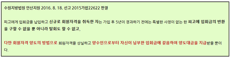 따라서 입회금 거치기간도 기존 회원의 입회일부터 계산하는 것이 합당하다고 본 것이다.