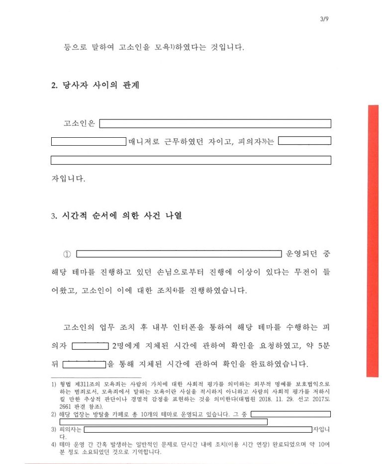 가해자가 의뢰인분께 욕설을 할 당시 상황이 녹음된 녹음파일 등의 직접 증거가 없는 사건이었기 때문에, 의뢰인분의 진술과 당시 상황을 목격한 목격자들의 진술로 가해자의 혐의를 입증해야 하는 사건이었고, 해당 목격자들이 의뢰인분과 함께 일하고 있는 자들이라는 이유로 그 진술의 신빙성이 의심될 수도 있는 상황이었기 때문에 그 외의 정황증거들을 바탕으로 의뢰인분 및 목격자분들의 진술에 신빙성이 있다는 점을 잘 소명해야 하는 사건이었습니다.