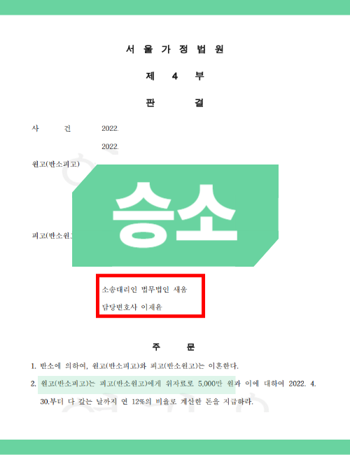 또한 부정행위를 뒷받침하는 추가 증거들을 정리해 제출한 결과, 재판부는 상간녀의 책임을 인정해 5,000만 원의 위자료를 지급하라는 판결을 내렸습니다.