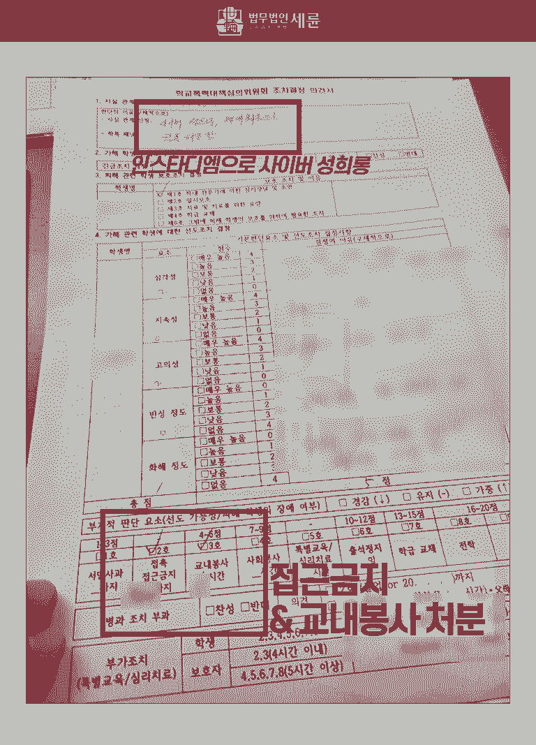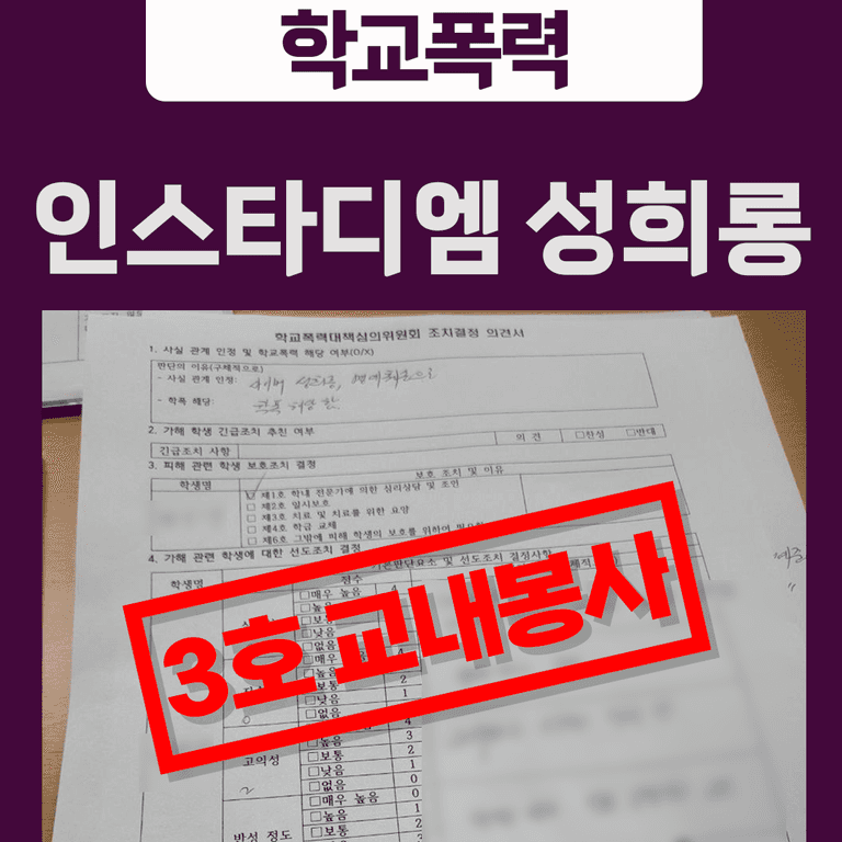![[🚩학교폭력 심의사례] 인스타디엠 카톡성희롱 사이버 학폭 처벌](/_next/image?url=https%3A%2F%2Fd2ai3ajp99ywjy.cloudfront.net%2Fuploads%2Ftitleimage%2Foriginal%2F5b5847e4a5bcee76f911d78a-original.jpg&w=3840&q=75)