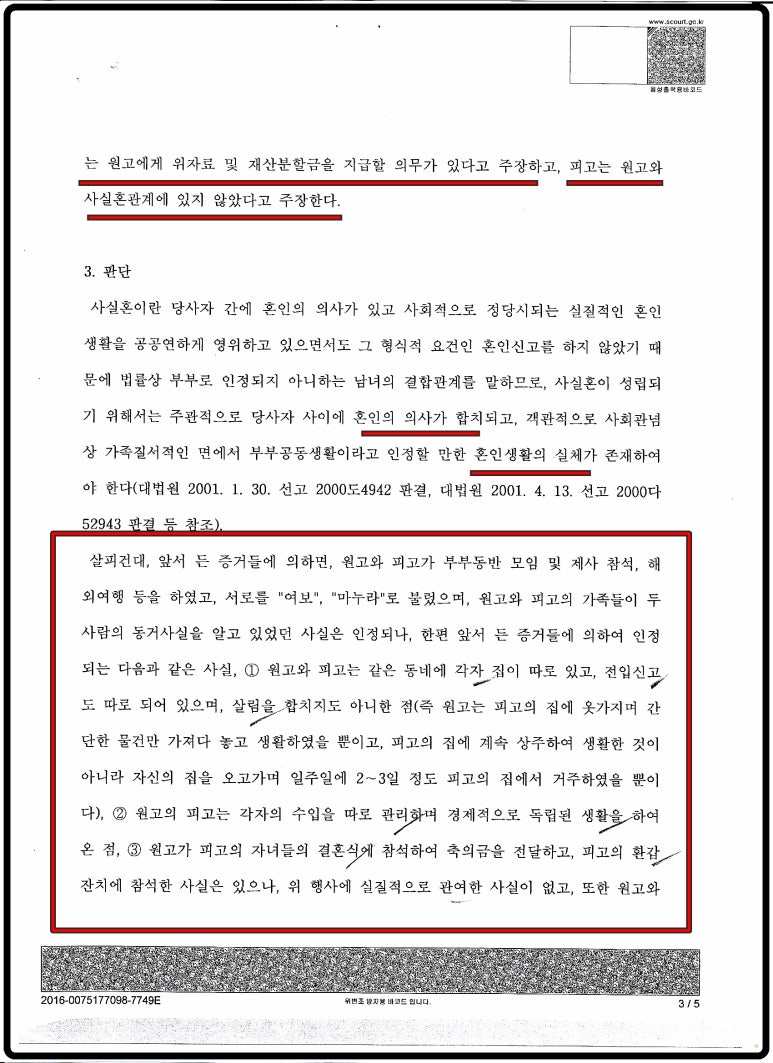 사실혼 관계에 관한 개념 정립에 도움이 되는 하급심 판례입니다.