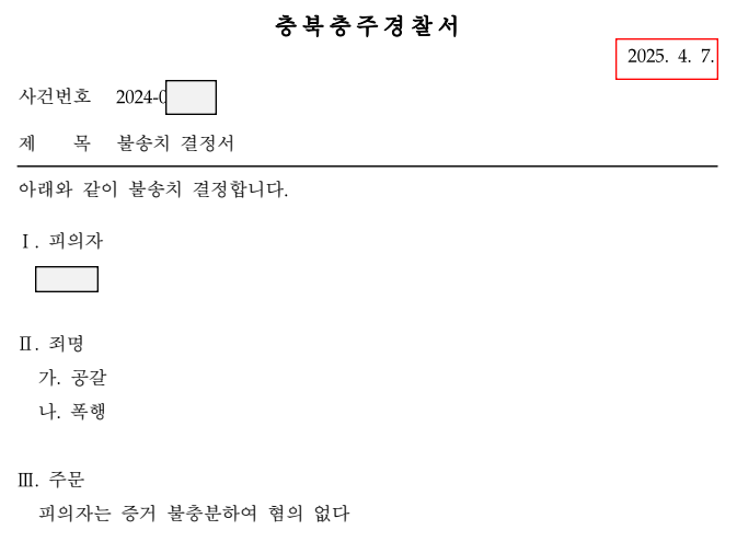 2025. 4. 7. 충북충주경찰서로부터 의뢰인(피의자)의 공갈 등 사건에 대해 불송치(혐의없음) 처분을 받은 성공사례가 있어 이를 공유하고자 합니다.