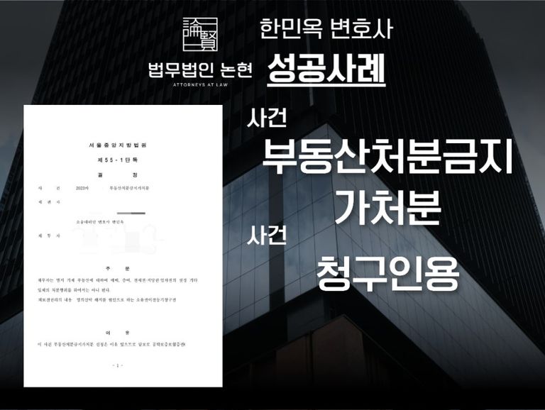 그러므로 부동산처분금지가처분이 필요한 상황이라면, 이때는 성공사례와 감사후기로 실력이 보장된 “부동산 전문 한민옥 변호사”에게 상담을 요청하셔서 법적인 조력을 받으시길 바랍니다.