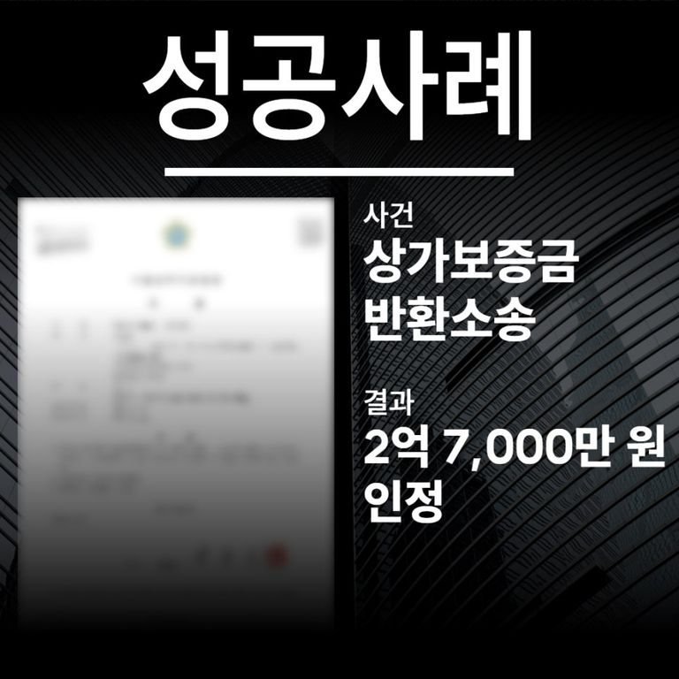 상가보증금반환소송 → 결과 : ‘2억 7,000만원’ 인정