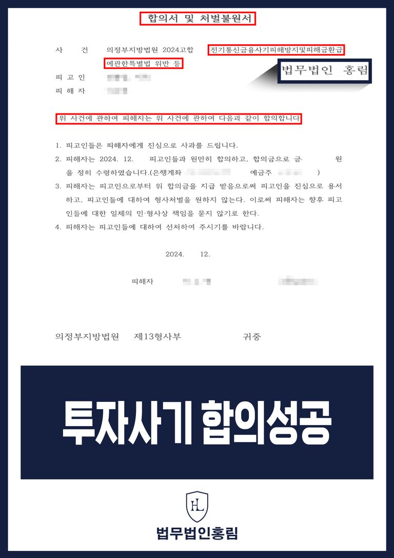 그 결과 피고인은 약속한 합의금을 피해자에게 전액 지급하였으며, 피해자는 법무법인 홍림의 조력을 통해 합의서와 처벌불원서를 작성하고 사건을 종결할 수 있었습니다. 이는 피해자가 금전적 손해를 현실적으로 회복하고 법적 절차를 통해 정당한 권리를 행사한 사례입니다.