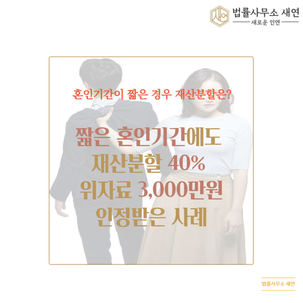 이번에는 3년의 짧은 혼인기간에도 불구하고 40%라는 높은 재산분할 기여도를 인정받은 사례에 대해 소개해드리려고 합니다.