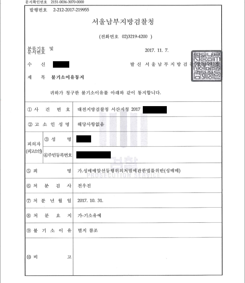 마사지 업소에서 여성과 성매매를 한 사안에 대하여, 적극 변론하여 기소유예 처분을 받았습니다.