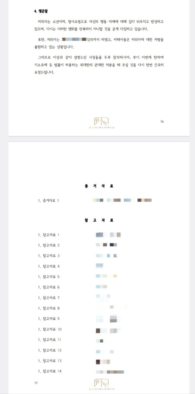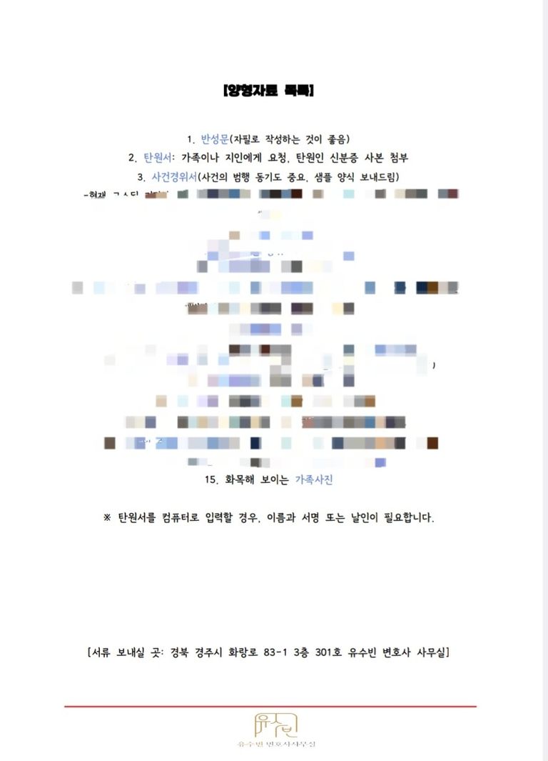 위 사진은 제가 당시 사건에서 제출 받기를 원했던 양형자료로 의뢰인 분들 즉, 학부모님들과 학생에게 요청을 드렸습니다.
