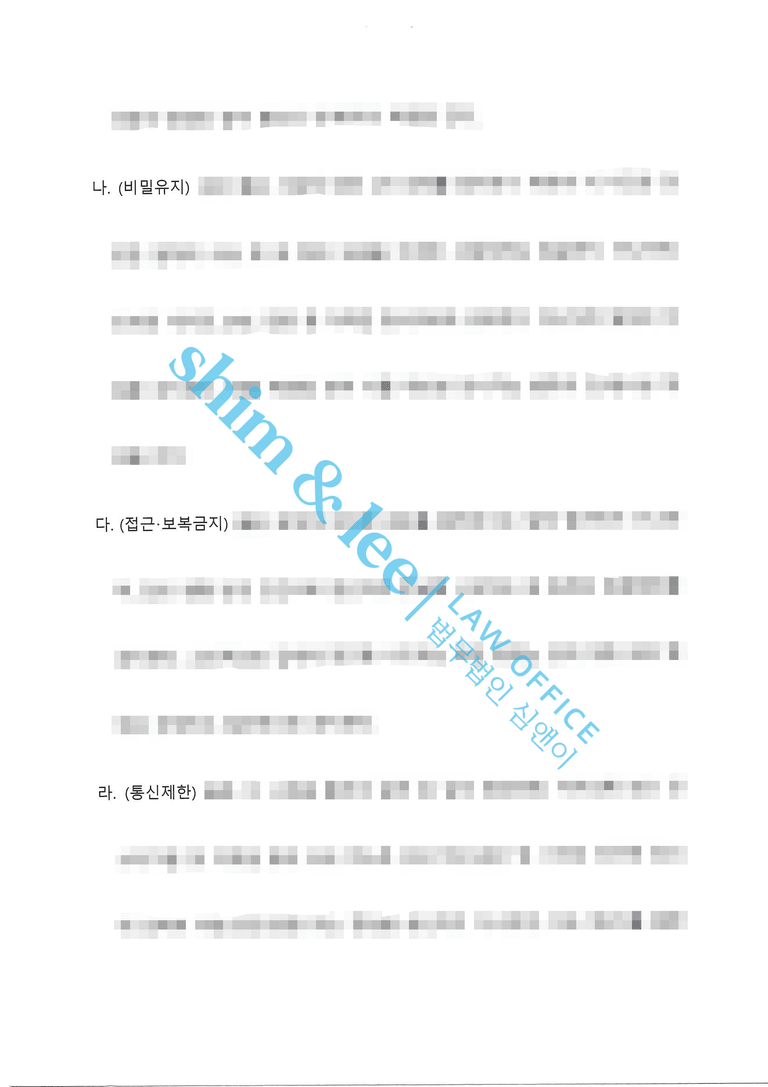 - 또한 의뢰인님이 원하셨던대로 가해자에게 자필 사과문을 요청해 받아냈고, 합의 이후 의뢰인의 안전이 보 될 수 있도록 촬영물 미소지, 비밀유지, 접근금지, 보복금지, 통신제한, 피해자에 대한 소제기 금지 조항을 덧붙여 합의서를 작성했습니다.