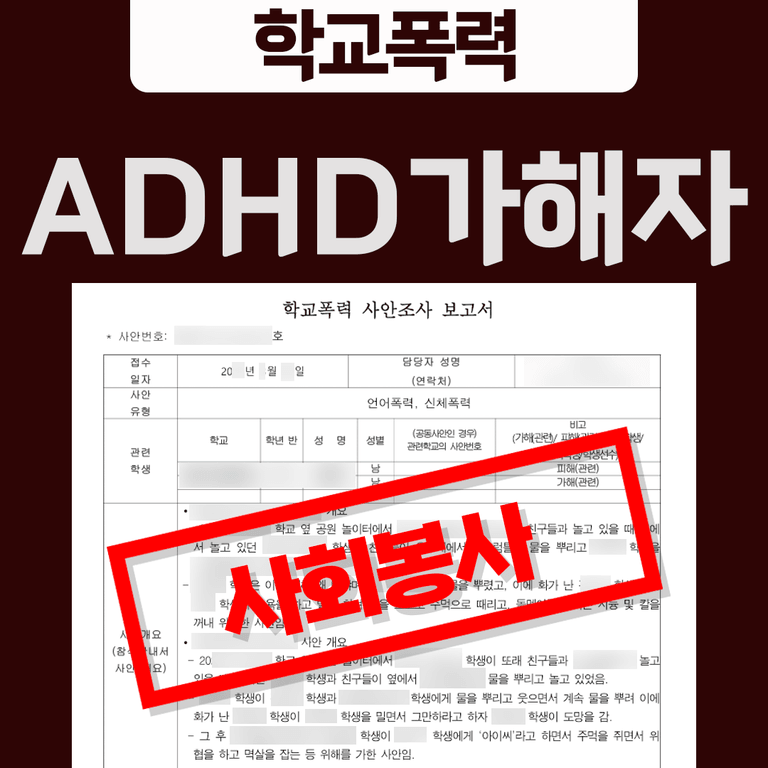 위 사례의 가해자는 ADHD 성향을 가진 학생으로 밝혀졌습니다. ADHD 아동은 생각하기 전에 바로 행동하는 경향이 있으며, 충동성과 폭력성을 억제하는 능력이 부족하다고 알려져 있는데요, 그러나 아무리 발달장애 또는 정신질환을 겪는 학생이라도 가해 행위에 대해 별도로 감경해 주는 규정은 없습니다.