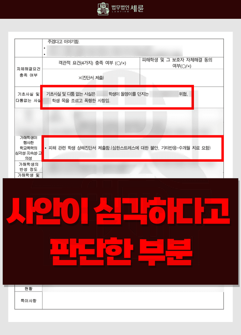 🚨법무법인 세륜 이태훈 대표변호사는 (現)성남/ (前)시흥 학폭위원회 위원으로 활동하며 경험한 사례를 바탕으로 소년범죄 및 학교폭력사건을 담당하고 있습니다. 실제 학교폭력위원회 심의를 하면서 겪은 사례들을 각색하여 공유하고 있습니다.