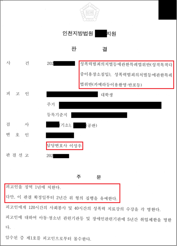 그러나 본 사건은 변호인의 신속한 대응, 포렌식 조율, 피해회복 조치, 양형자료 구성 등이 유기적으로 작용하여 실형을 피한 대표적인 성공 사례입니다.