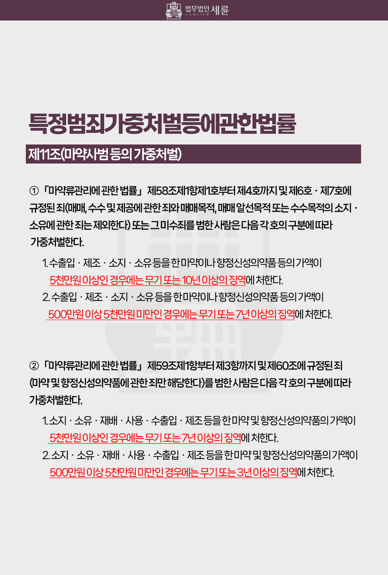 해당 범죄는 ✔️어떤 약물을 취급했는지, ✔️유통 방식, ✔️그 횟수나 기간, ✔️범죄를 통해 얻은 수익금 등에 따라 처벌 수위가 달라지게 됩니다. 재범인 경우나 수익금이 큰 경우 가중처벌의 대상이 될 수 있지요.