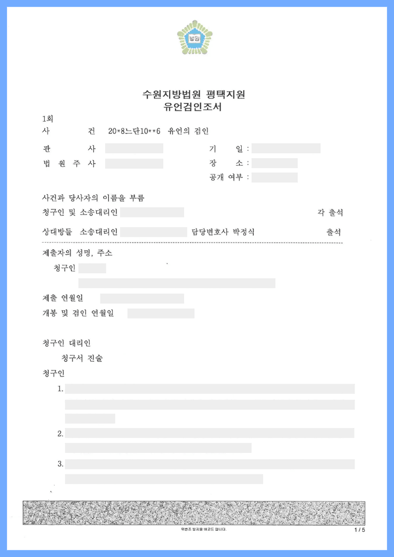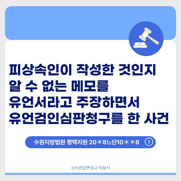 청구인과 참여인들의 모친인 피상속인은 계속 한국에 거주하셨는데, 계속 외국에 거주하던 자녀인 청구인이 일반 노트에 메모 형식으로 작성된 메모를 피상속인(모친)의 자필유언서라고 주장하면서 법원에 유언검인심판청구를 제기한 사안입니다.