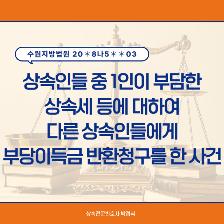 피상속인 사망 이후 피상속인이 남긴 상속재산은 대부분 장남이 상속받았기 때문에 장남이 상속세 등 관련 세금을 납부하였는데, 원고는 피상속인이 사망하고 12년 이상이 지난 시점에서 자신이 모두 부담한 상속세와 상속비용 등에 대하여 차남과 3남, 4남의 배우자와 자녀들을 상대로 부당이득반환 청구소송을 제기하였습니다.