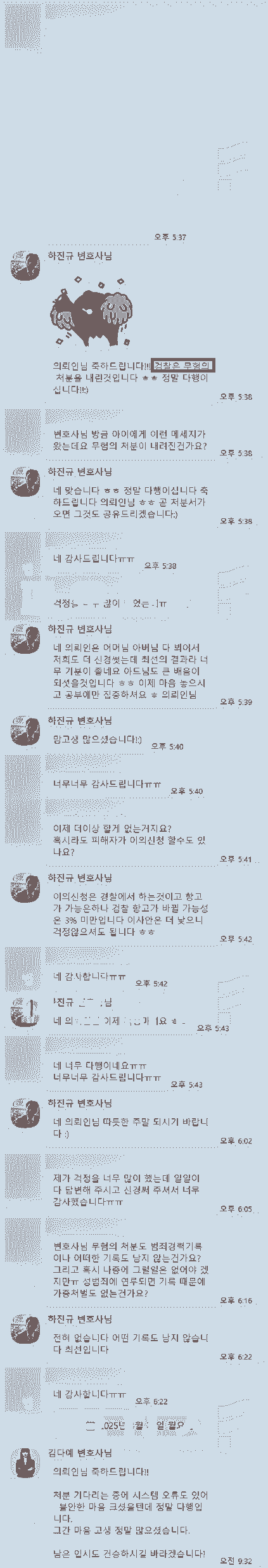 학생인 의뢰인이 통매음 혐의가 인정되면 성범죄 전과가 남을 수 있다는 것이 큰 걱정을 하셨던 부모님은 혐의없음 처분을 받은 이후 변호인에 감사의 인사를 표하셨습니다.