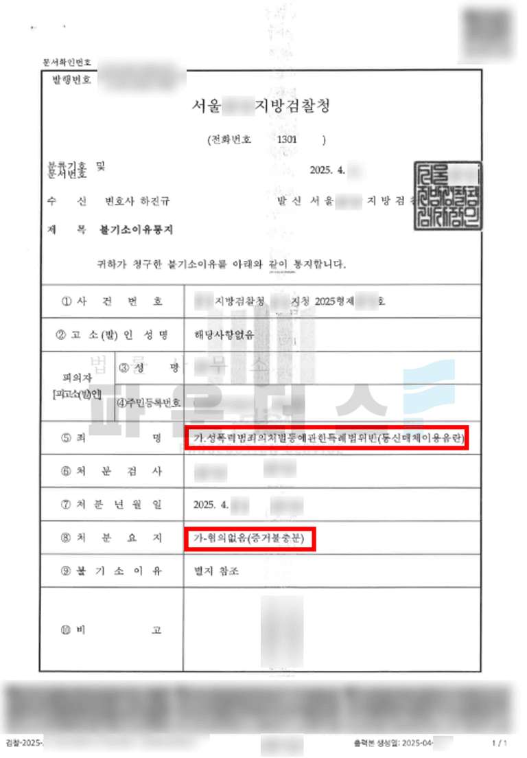 그 결과 의뢰인은 유튜브에 성적인 내용을 작성하여 고소당한 통매음 사건에서 혐의없음 처분을 받아 성적 목적의 억울함을 풀 수 있었습니다.