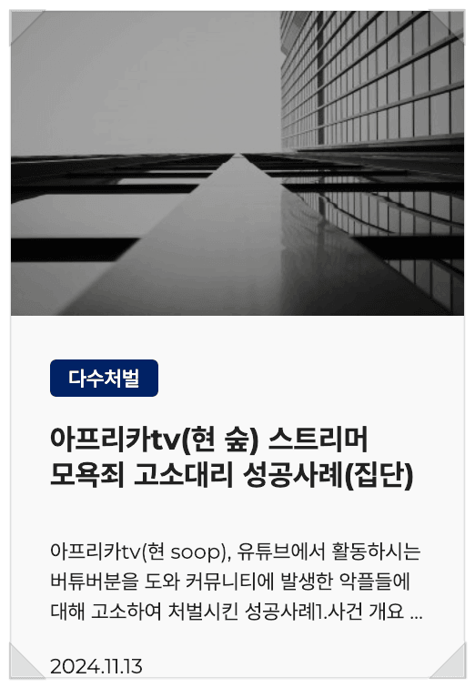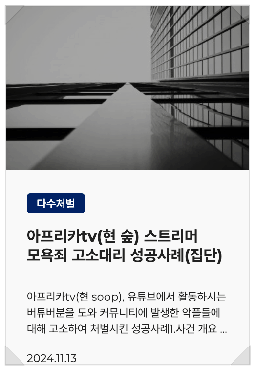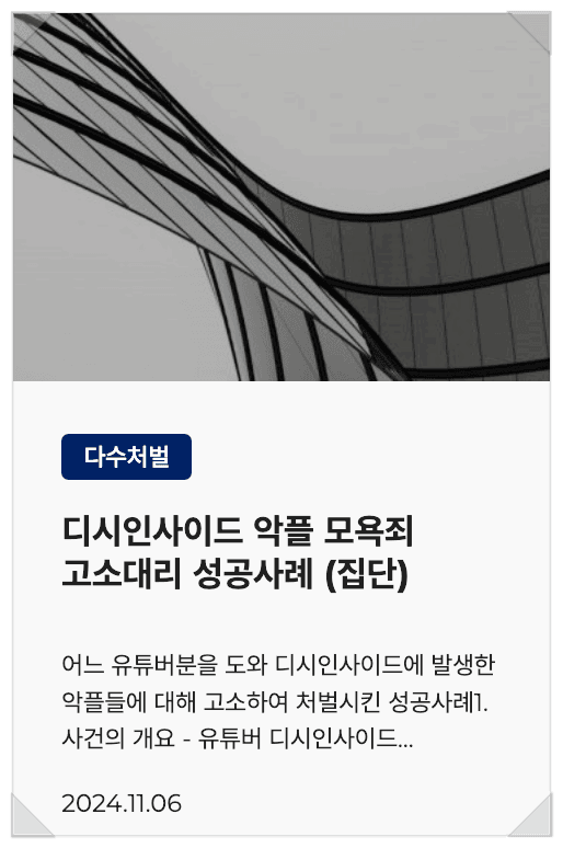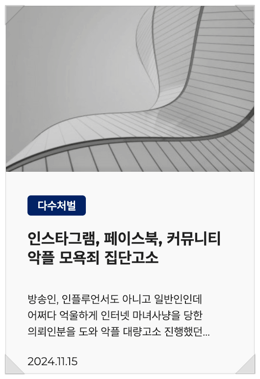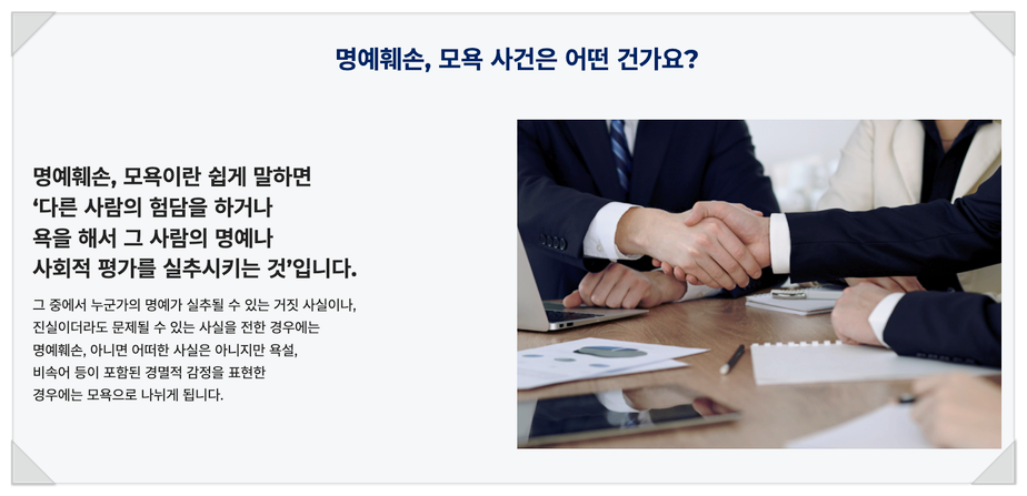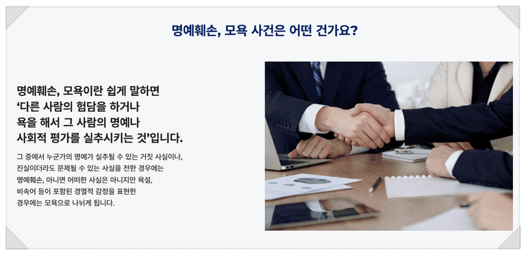 ![[명예훼손/모욕]저격글 고소? 명예훼손/모욕 핵심#명예훼손#모욕](/_next/image?url=https%3A%2F%2Fd2ai3ajp99ywjy.cloudfront.net%2Fuploads%2Ftitleimage%2Foriginal%2F5c495c24d2552e6794388ce2-original.jpg&w=3840&q=75)
