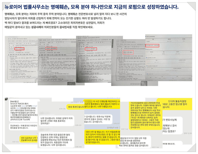 <뉴로이어 법률사무소 성공사례 중 일부 발췌>