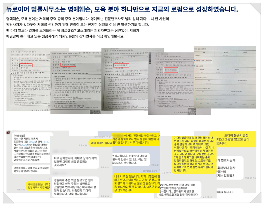 다양한 명예훼손, 모욕죄 사건에서 아래와 같이 처벌은 물론이고 피해에 대한 배상까지 이끌어왔습니다.