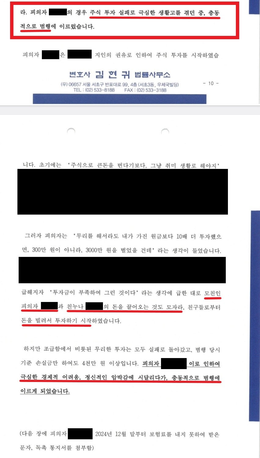검사든, 판사든 처분을 결정하기 전에 항상 변호인의견서를 봅니다. 그 안에 "왜 그 피의자나 피고인에게 선처를 해줘야 하는지" 상세히 적혀있기 때문입니다. 그래서 결국 변호인의 노력과 역량은 의견서로 결정됩니다.