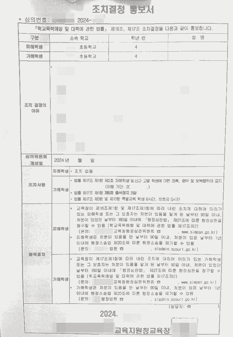 4. 학폭위의 결정 – 전학조치 없이 마무리된 사건