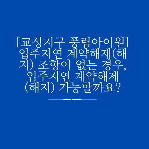 이러한 입주지연을 대비하여 공급계약서에는 입주예정일로부터 3개월(또는 6개월)을 초과한 경우 수분양자의 계약해제 조항이 들어가는 경우가 일반적입니다. 그런데 최근 상담한 교성지구 풍림아이원 아파트 공급계약서에는 입주지연 계약해제를 인정하는 조항이 없어서, 수분양자가 이 경우 입주지연 계약해제를 할 수 있는지를 문의하셨습니다.