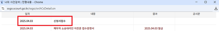 2025년 4월 3일 파산 신청 접수 후 단 2주 만인 2025년 4월 16일, 수원회생법원에서 법인 파산 선고 결정을 받았습니다.