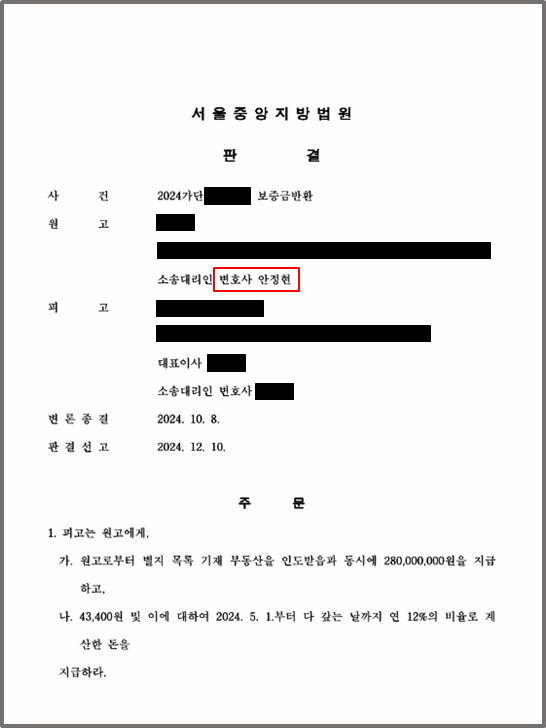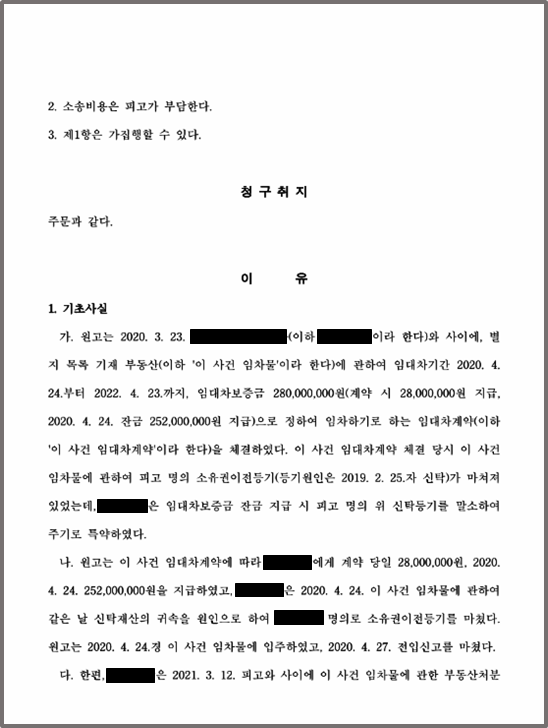 재판부는 저희 주장이 타당함을 모두 인정하셨고, 신탁회사는 보증금 전액과 임차권등기비용까지 지급할 의무가 있음이 인정되었습니다.
