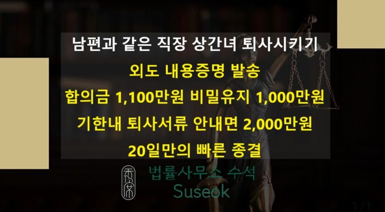 본 변호사는 상간녀를 압박하면서도 그녀가 피할 수 있는 구석을 보여주었습니다. 그것은 바로 우리 의뢰인이 원하는 그 조건이었습니다.