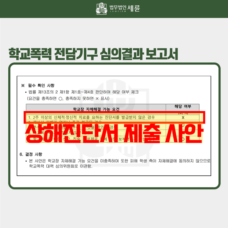 앞서 소개해 드린 사례와 같이 폭행 사안이고 상해진단서와 같은 명확한 증거가 제출된 상황이라면, 감정 싸움은 물론, 처벌이 더 엄격하게 내려질 가능성도 높습니다. 따라서 초기 단계부터 전문 변호사의 도움을 받아 우리 자녀의 미래를 위해 신중하게 대처하시길 바랍니다.