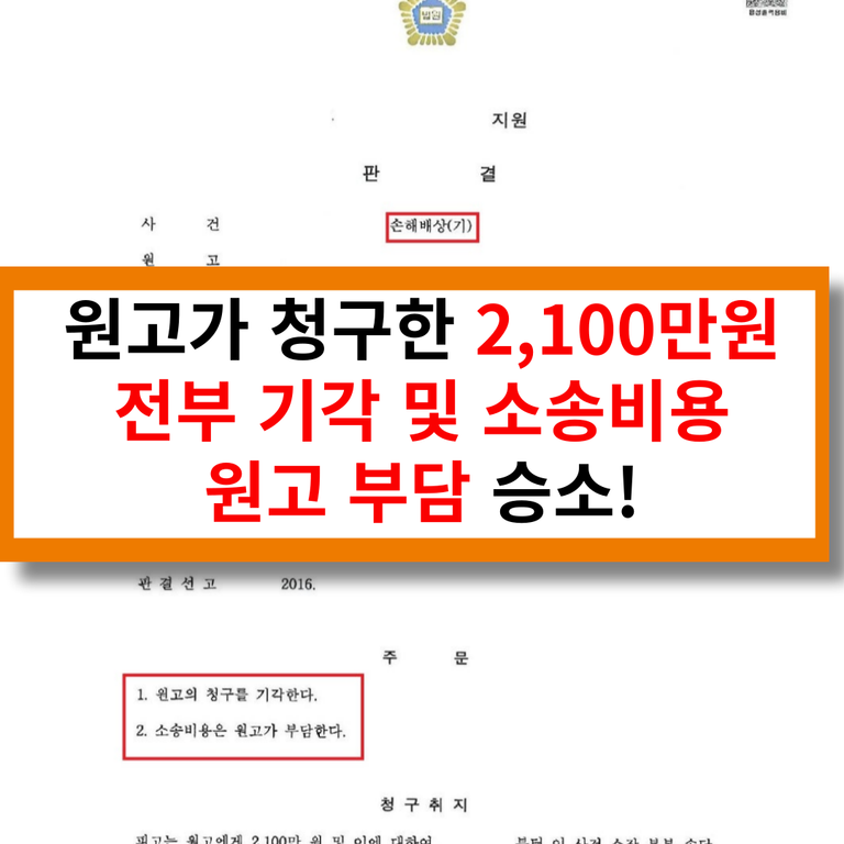 소송비용 또한 원고 전부 부담으로 피고 전부 승소한 사례!