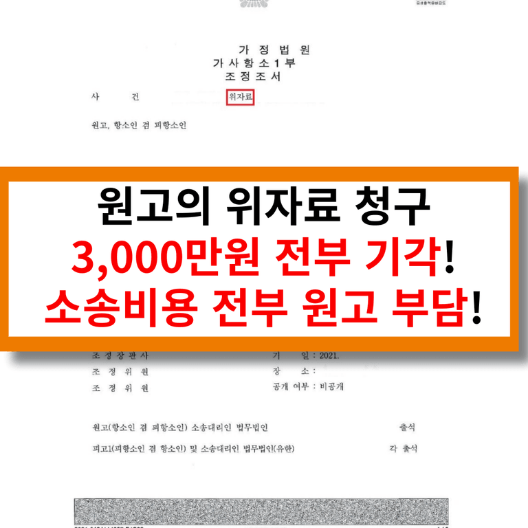 위자료를 전부 없는 것으로 포기 시키면서, 확실히 방어한 조정 승소사례