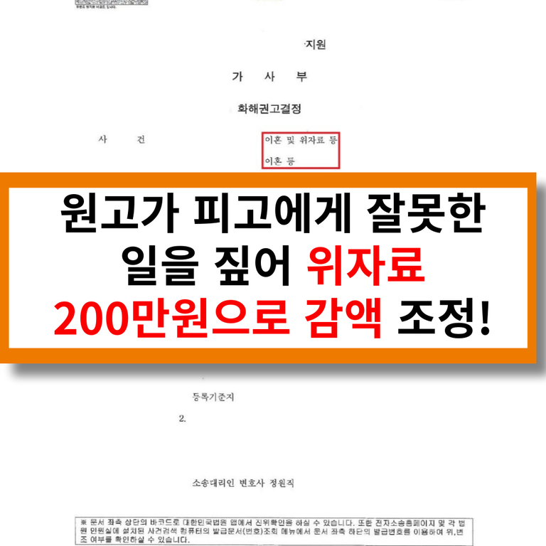위자료를 200만 원으로 감액시킨 승소 사례!