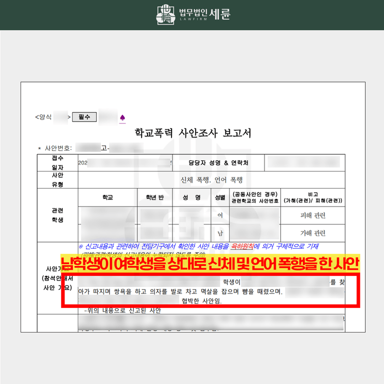 🚨법무법인 세륜 이태훈 대표변호사는 (現)성남/ (前)시흥 학폭위원회 위원으로 활동하며 경험한 사례를 바탕으로 소년범죄 및 학교폭력사건을 담당하고 있습니다. 실제 학교폭력위원회 심의를 하면서 겪은 사례들을 각색하여 공유하고 있습니다.