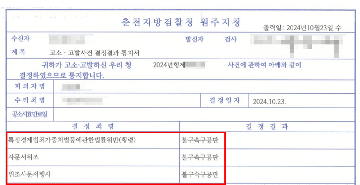 검사는 본 변호인의 의견을 받아들여 피고소인에 대하여 당초 송치된 혐의인 특경(횡령) 뿐만 아니라 사문서위조 및 동행사죄도 불구속구공판하여 피고소인은 법정에 서게 되었습니다.