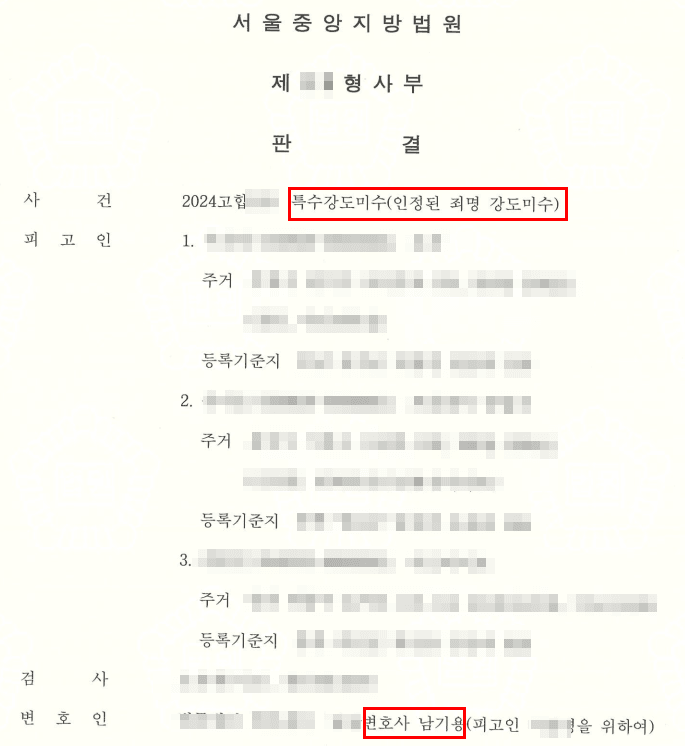 의뢰인은 기본적으로 범행을 인정하고 깊이 반성하고 있는 상황이었기에 피해자들에 대한 합의가 중요하였습니다. 본 변호인은 피해자들의 인적사항을 확보하기 위하여 법원을 통해 피해자들의 합의의사 여부를 확인하고 수차례 연락하여 피해자와 합의에 이를 수 있었습니다.