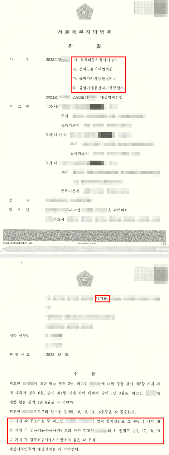 단순 전자금융거래법위반으로 처벌되는 것과 컴퓨터등사용사기방조죄로 처벌되는 것은 천지차이이기 때문에 반드시 변호사의 조력이 필요한 사안이었습니다.