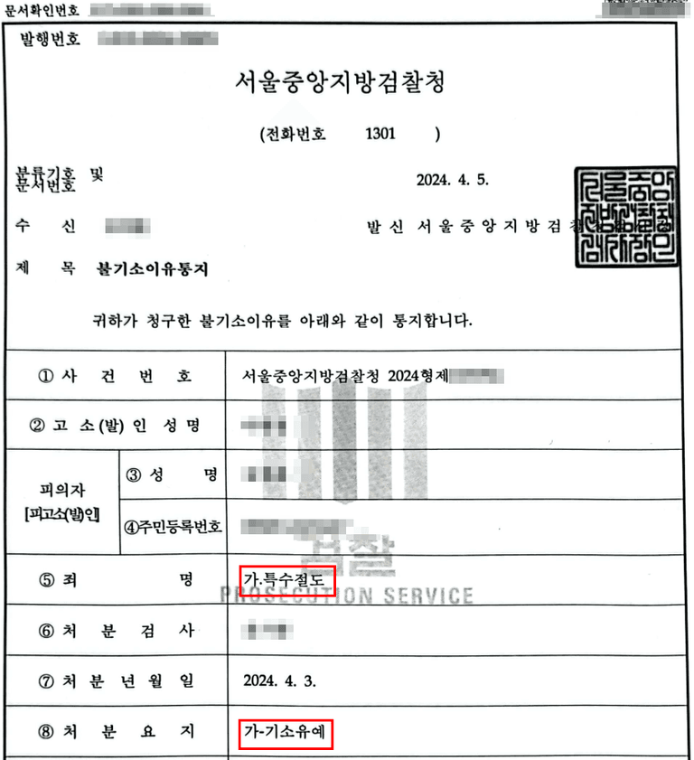 검찰은 의뢰인에 대하여 기소유예 결정을 하였습니다.