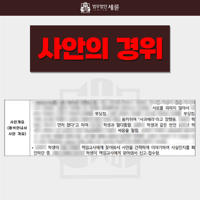 🚨법무법인 세륜 이태훈 대표변호사는 (現)성남/ (前)시흥 학폭위원회 위원으로 활동하며 경험한 사례를 바탕으로 소년범죄 및 학교폭력사건을 담당하고 있습니다. 실제 학교폭력위원회 심의를 하면서 겪은 사례들을 각색하여 공유하고 있습니다.