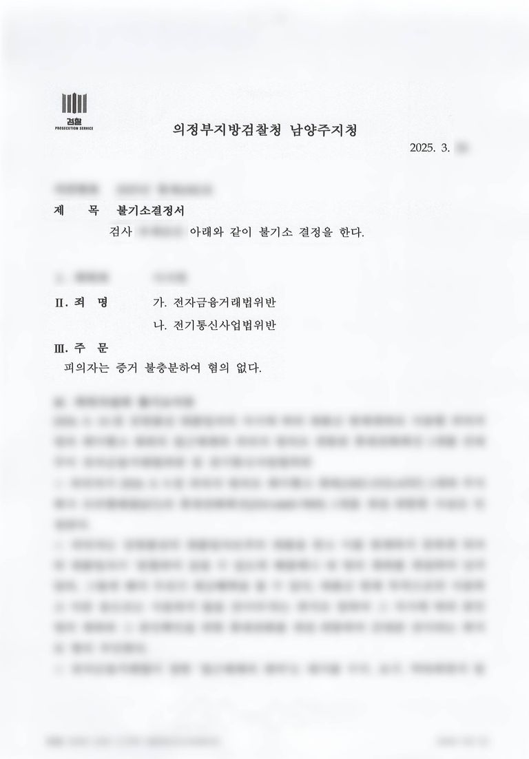 결과적으로 검찰은 무혐의(불기소) 처분을 내렸습니다.