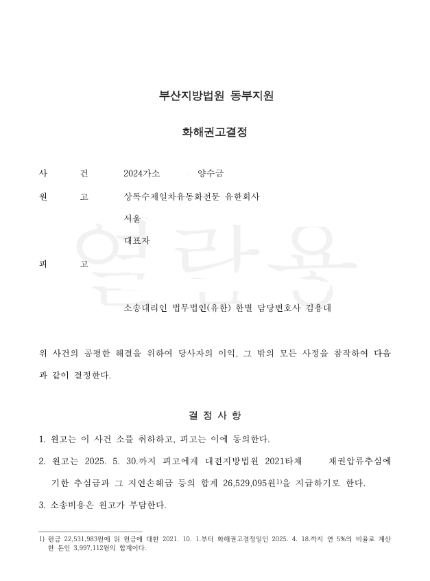 원고 소 취하 및 원리금 반환
