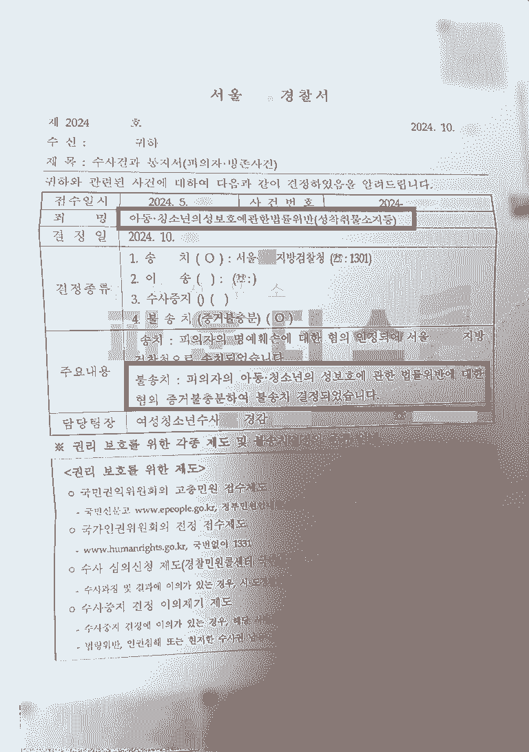 논리적인 법적 주장 끝에 의뢰인에 대한 아청법 위반(성착취물 소지) 혐의에 대하여 불송치 결정이 내려졌습니다.