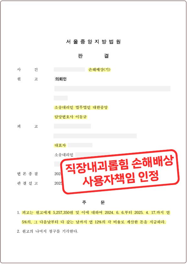 ![[⚡직장내괴롭힘] 손해배상청구, 사용자책임 인정!](/_next/image?url=https%3A%2F%2Fd2ai3ajp99ywjy.cloudfront.net%2Fuploads%2Ftitleimage%2Foriginal%2F5b51aa769c3991043636f007-original.jpg&w=3840&q=75)