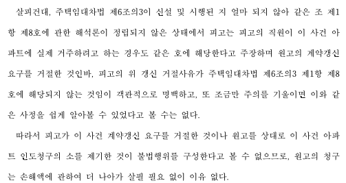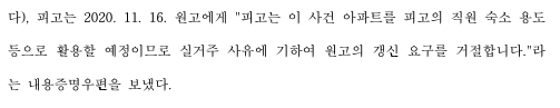 1. 법인 임대사업자가 실거주 사유를 이류로 임차인의 갱신요구를 거절하였음에도 승소한 사례입니다.