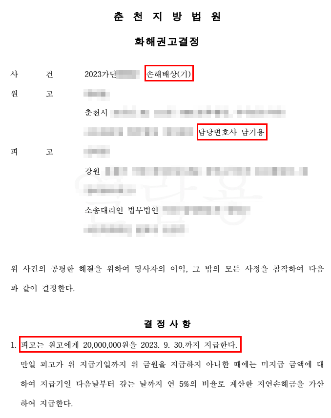 법원은 피고가 원고에게 2,000만원을 지급하라는 화해권고결정을 하였습니다. 이 사건은 남편의 진술증거 말고는 외도의 증거가 없었던 상황이었습니다. 그럼에도 불구하고 상황에 따라서 원고 청구가 인용될 수 있다는 점을 시사합니다.