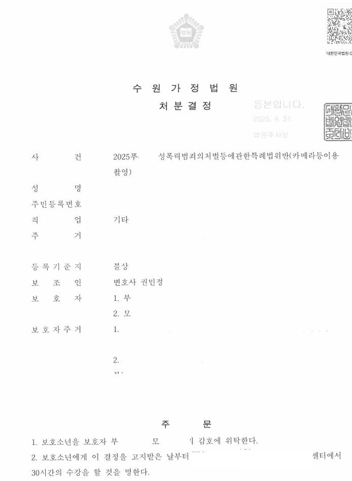 그 결과 성범죄임에도, 재판부는 해당 사안에 대해 가장 낮은 처분인 1, 2호 처분을 내렸습니다.