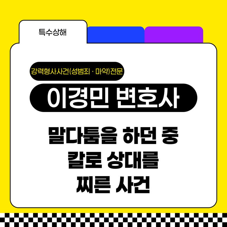 의뢰인은 피해자와 말다툼을 하던 중 분에 못 이겨 칼을 들고 상대방을 찔렀다는 특수상해죄 혐의로 입건되어 경찰조사를 앞두고 있는 상황이었습니다.