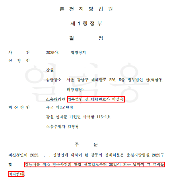 '집행정지 인용' 결정을 받을 수 있었습니다